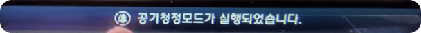꾹 누르고 있어도 실행 알람이 뜨지 않는다면 공기청정모드가 없는 것인데, 이럴 경우는 송풍 모드를 이용한 다른 방법을 적용해주시면 되겠습니다.